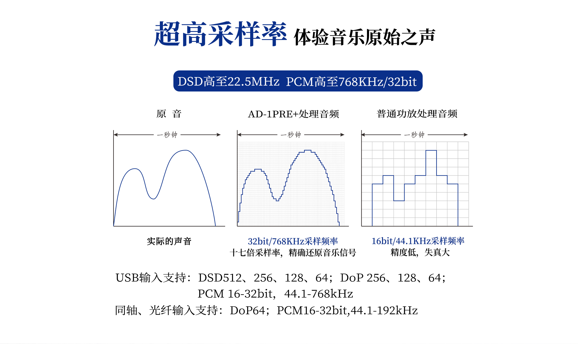 同軸、光纖輸入支持:DoP64;PCM16-32bit,44.1-192kHz