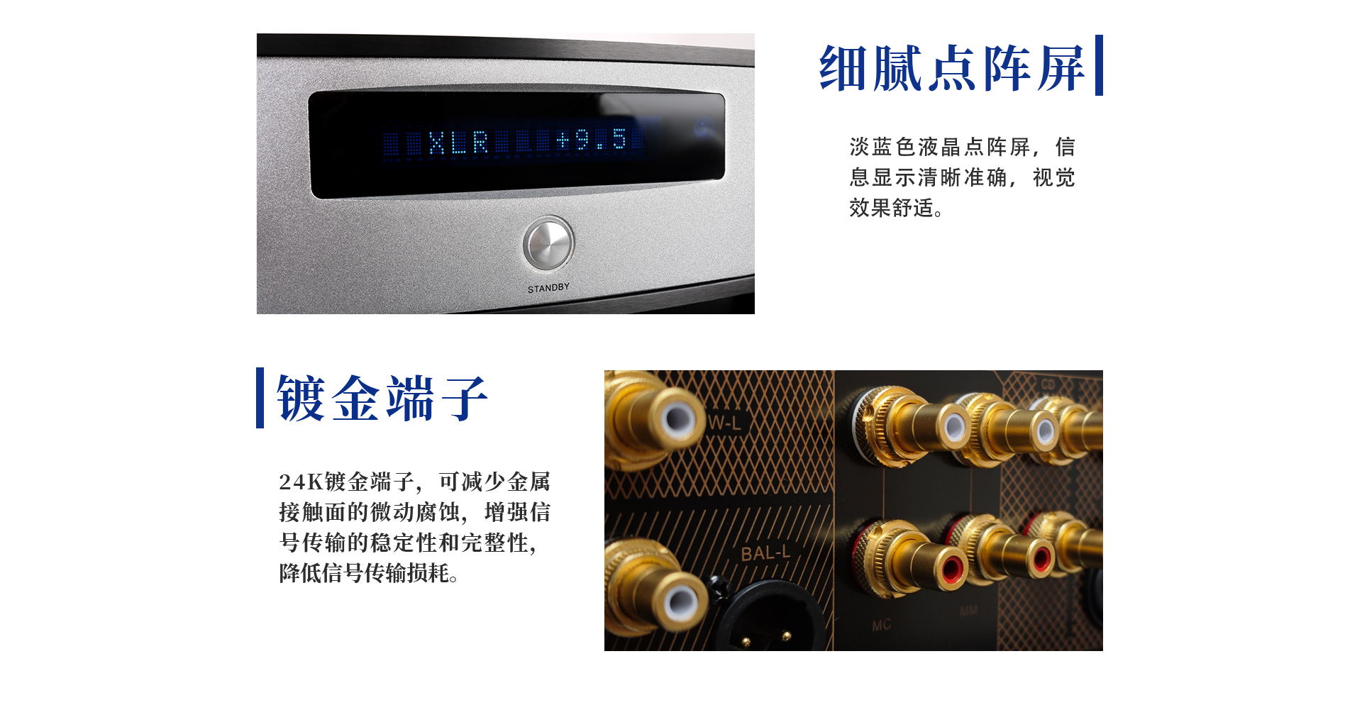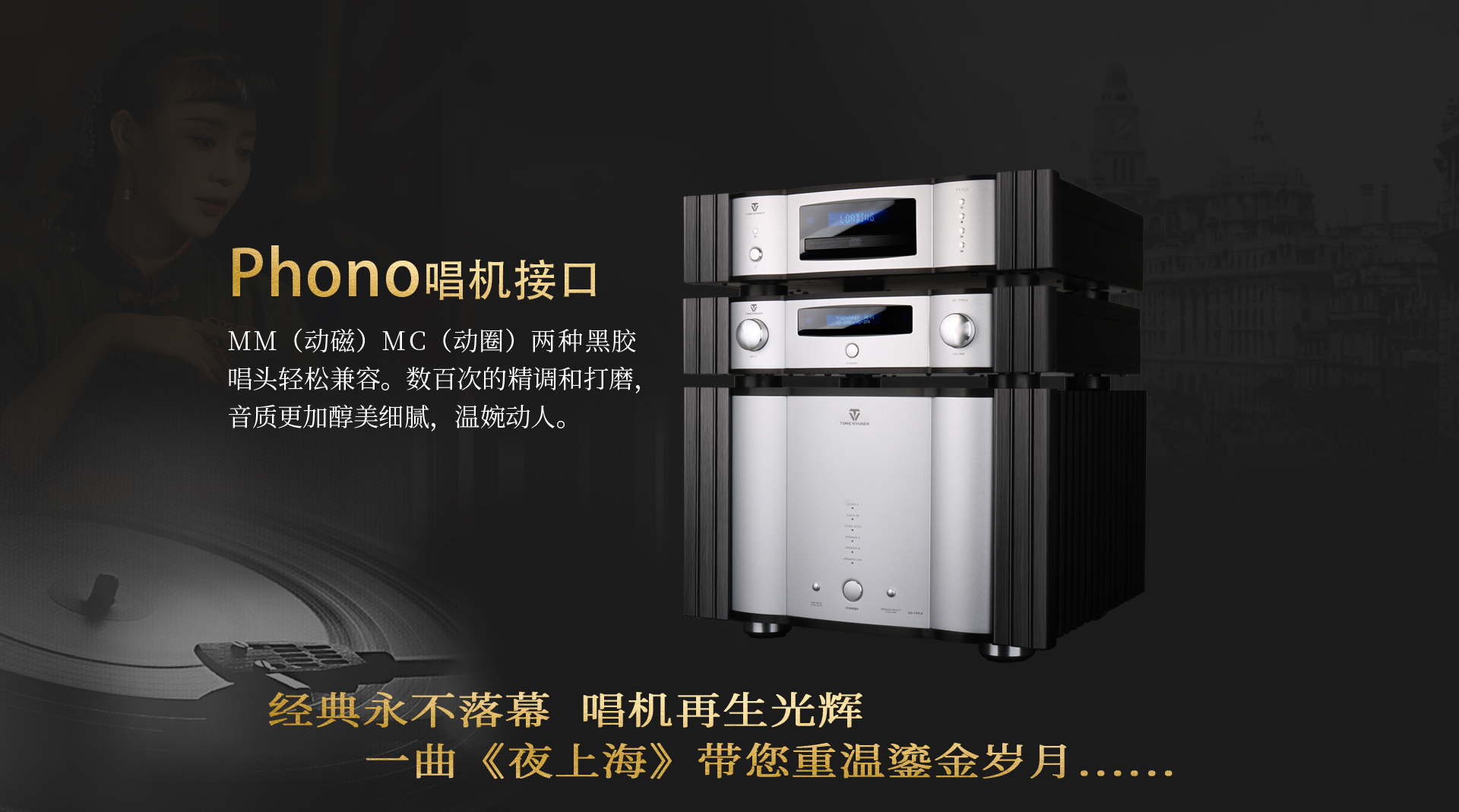 2、兩路唱機(PHONO)輸入接口:一路動圈輸入(MC),一路動磁輸入(MM)