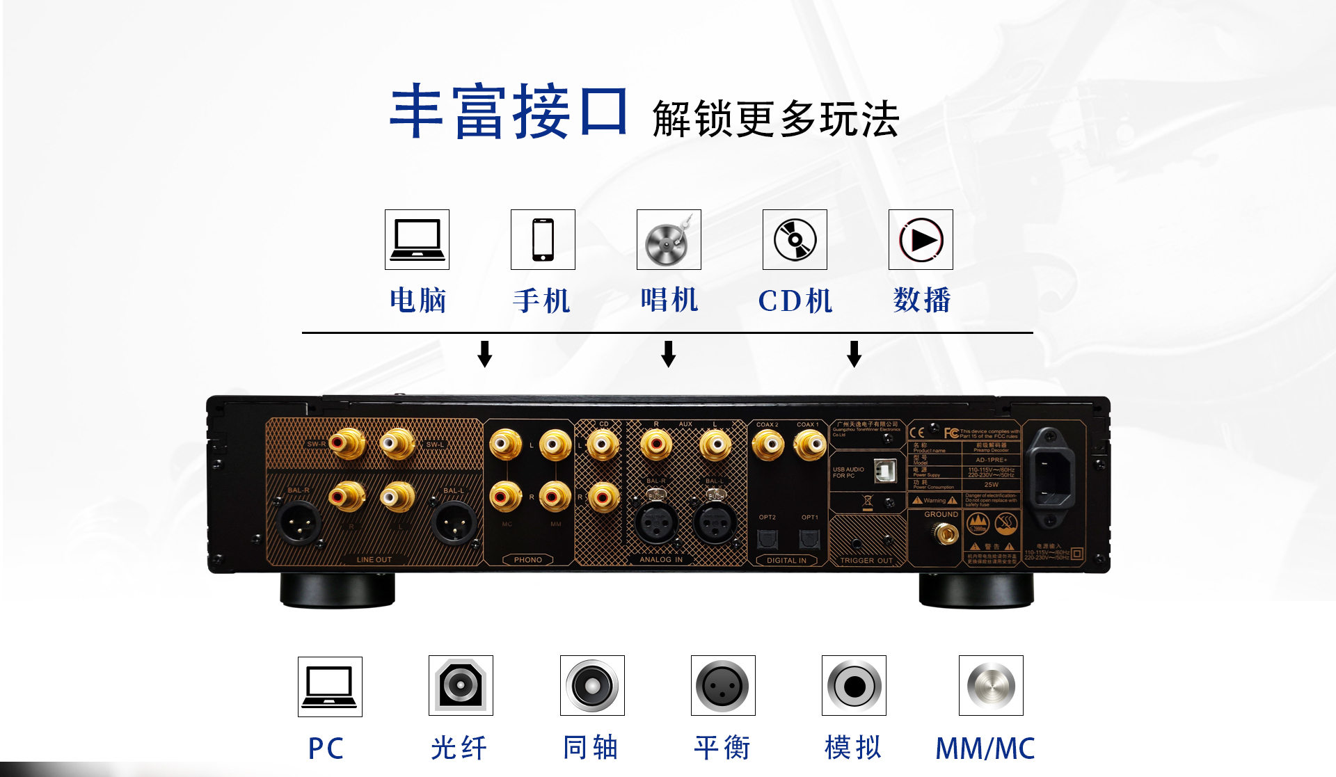 6、采用特別設計的發燒模擬電源供電,使音質更佳溫暖醇厚;