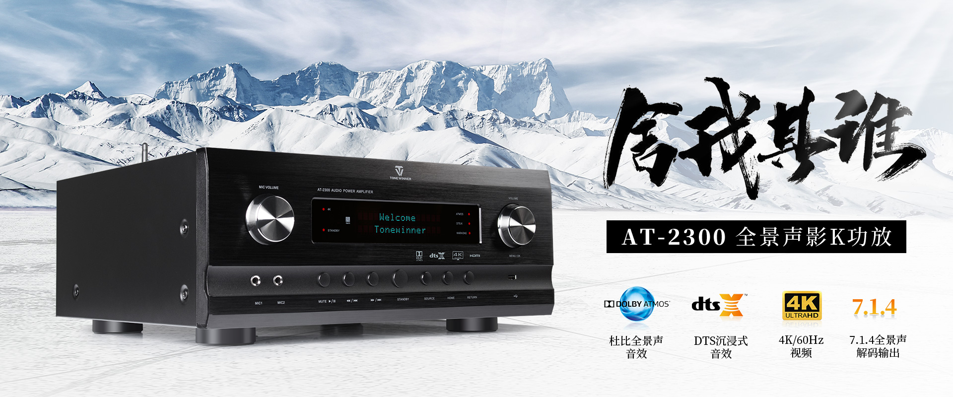 天逸創世代全景聲影K功放AT-2300——一款“滿足消費者未來十年的影音追求”的強大產品!它外表冷峻如戰狼,內核強悍如軍士,功率澎湃如潮涌,功能強大,品質優良,音質醇美,且性價比奇高!是一款專為熱愛生活、追求高品質音效的國人打造的產品,它集全景聲家庭影院系統、個人音樂中心和專業卡拉OK于一體的家庭娛樂的高端影音中心機。