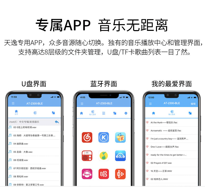 10.內置高品質音樂播放器,支持TF卡及U盤音頻文件播放,支持FLAC、APE、WAV、MP3等多種無損及有損壓縮音頻格式,支持多層文件夾管理;