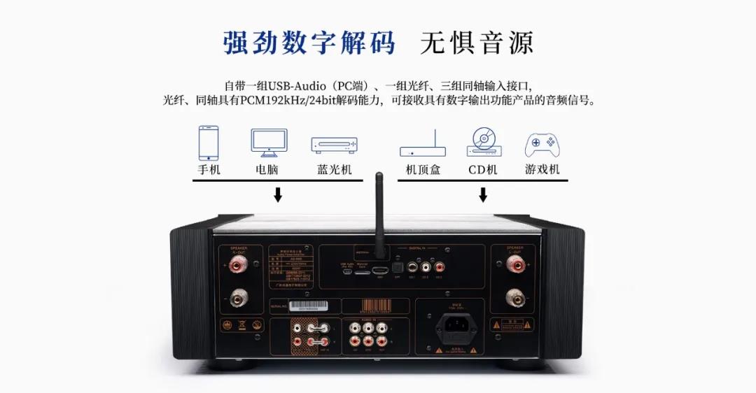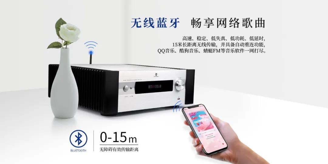 AD-86D支持藍(lán)牙傳輸功能。藍(lán)牙播放的優(yōu)勢(shì),除了能夠保證音樂的高品質(zhì),還能夠無限暢享在線歌曲。以人手一部的手機(jī)做音源,可省去單獨(dú)購買CD機(jī)或播放器的錢,還能省去不少淘CD的錢,可謂一勞永逸。