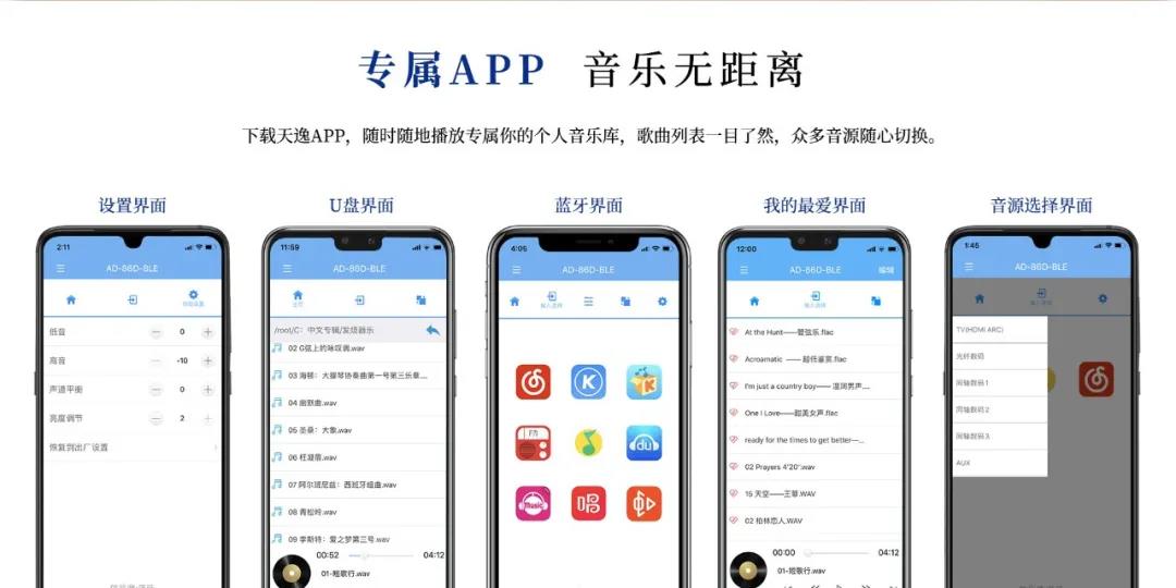 手機(jī)APP功能也是該機(jī)的一大特色。用手機(jī)APP,即使在臥室,也能手握手機(jī)隨意操控遠(yuǎn)在客廳內(nèi)的功放。音源切換、音量調(diào)節(jié),讀取U盤/TF卡內(nèi)的播放列表隨意切歌……如此便捷的功能,可謂懶人居家必備。