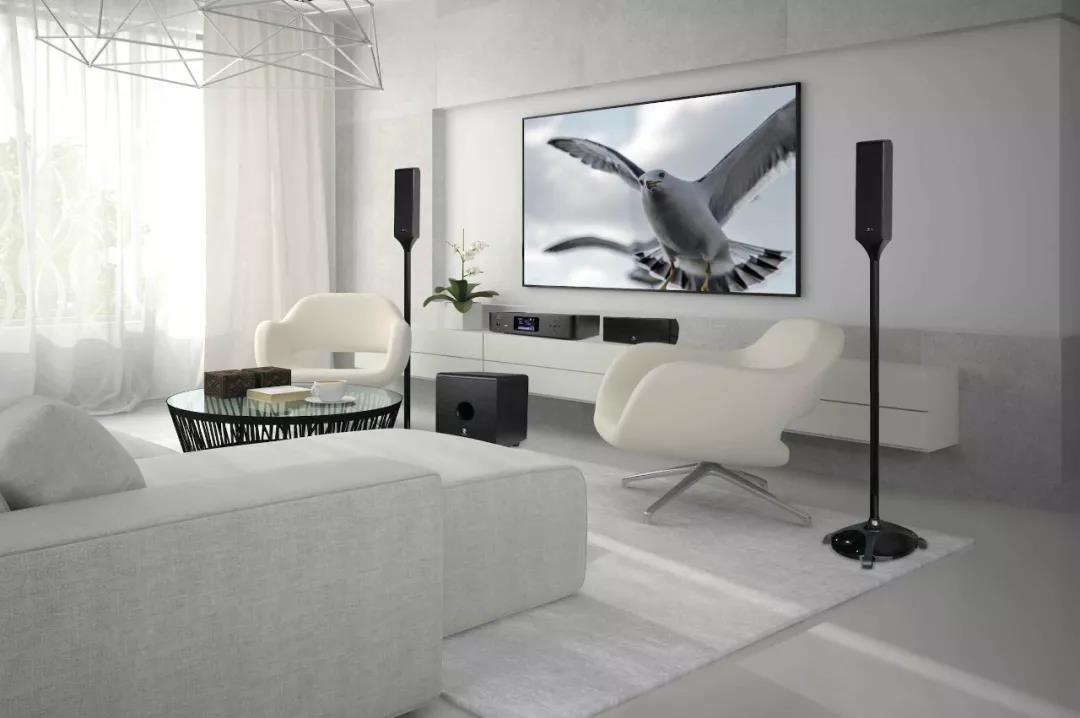 悠享一號是一款專為現(xiàn)代家庭打造的全景聲客廳影院音響產(chǎn)品。它有兩個版本:時尚版和無線豪華版。前者是5.1.2配置,所有聲道都需要連接音箱線使用;后者無線豪華版則是環(huán)繞聲道比時尚版多兩個反射式頂置單元,并且采用無線傳輸方式,環(huán)繞無需接音箱線,一舉解決了傳統(tǒng)家庭影院中布線難的問題,并跟現(xiàn)代家居的裝修完美契合!