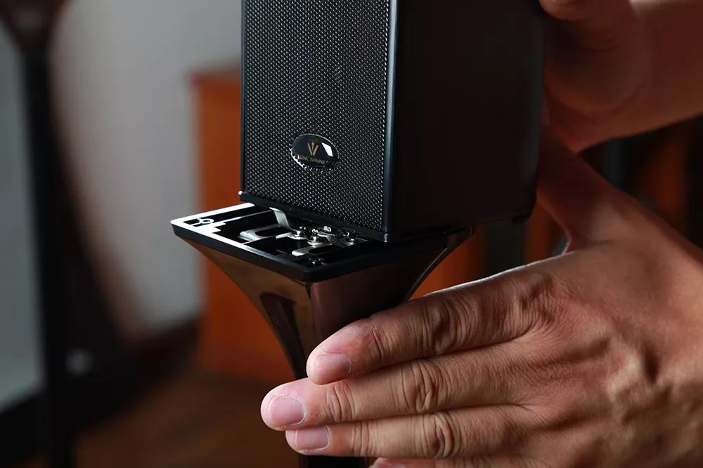 同時擁有外觀專利及實用新型設計專利的巧妙設計連接方式也是這套影院設備的重頭戲!傳統(tǒng)家庭影院都需要提前布線,并且接線口靠音箱中部位置致使線只能吊在半空中,這簡直逼死強迫癥!而悠享一號的音箱和腳架之間采用滑入卡扣式連接,音箱接線柱被巧妙地隱藏在腳架底部,美觀大氣。而且,豪華版環(huán)繞采用無線傳輸方式,只需將音箱與腳架連接好,插上電源、即可配對使用,無需再擔心布線問題。這樣的接線設計,既不占空間,將揚聲器放在角落,又為用家減少了繁雜的布線,一舉兩得。