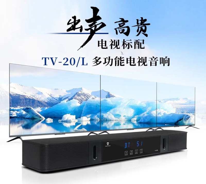 擁有一臺TV-20/L電視音響即可彌補電視聲音薄弱的缺陷。此外還具有藍牙無線傳輸、U盤/TF卡本地播放、ARC音頻回傳等功能,為好聲音持續加碼。