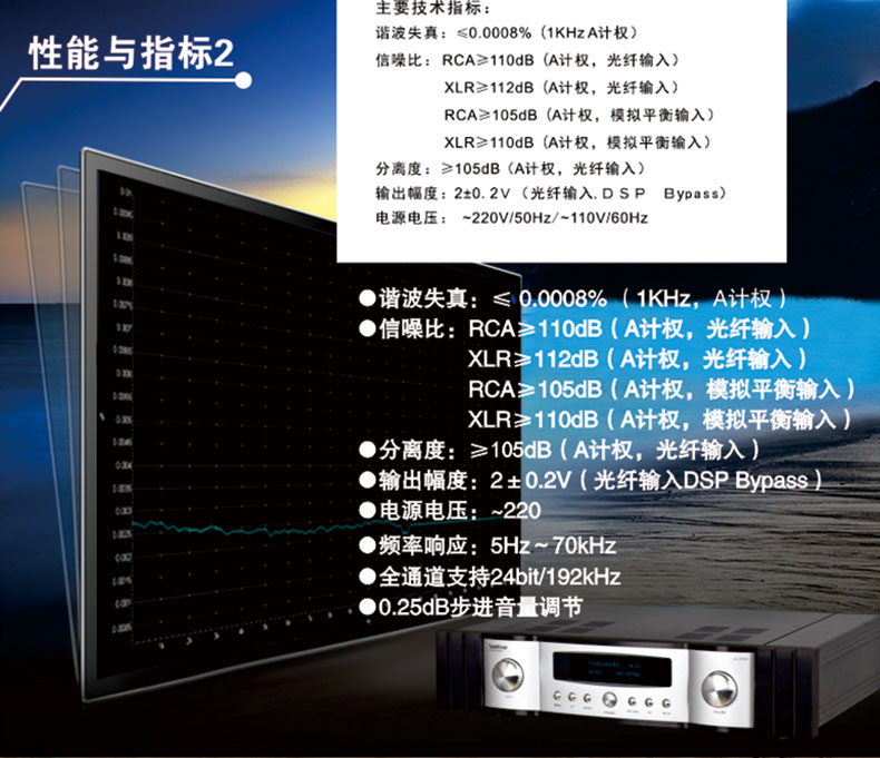 ●全通道支持24bit/192kHz ●0.25dB步進音量調節