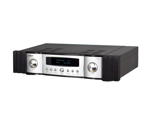 AD-8PRE的外殼采用全鋁合金制作,工藝精良。外觀方面顯得簡潔、高端而貴氣,遙控器也采用了鋁合金制作。面板采用了曲線弧面與直線條的組合,既時尚又莊重,經久耐看永不過時,能體現高端產品的奢華與大氣。