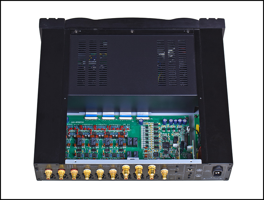 AD-8PA采用分腔結構,這樣的一個好處是結構非常緊固且可消除振動。另一個好處是有非常優秀的電磁屏蔽作用,可以很好的隔絕電源系統對音頻信號的干擾,還可以讓左右聲道有著極高的分離度。