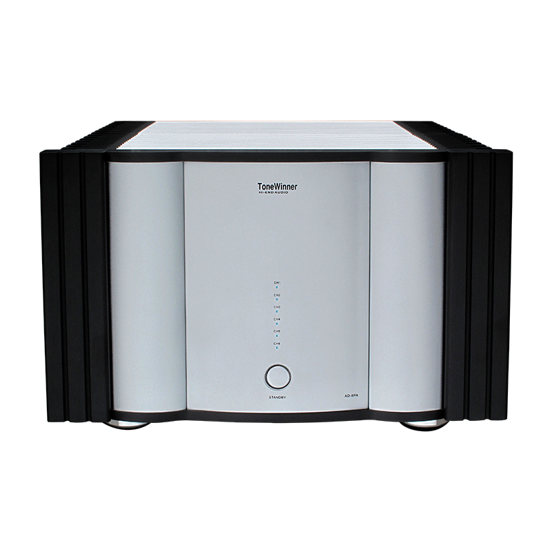 AD-8PA的外觀設計力求做到高大、威猛,簡潔、莊重、嚴肅,希望能體現旗艦級后級的高大尚的風范。機箱、面板采用全鋁合金制作,整機耗鋁量高達25公斤,給人高端、貴氣的感覺。