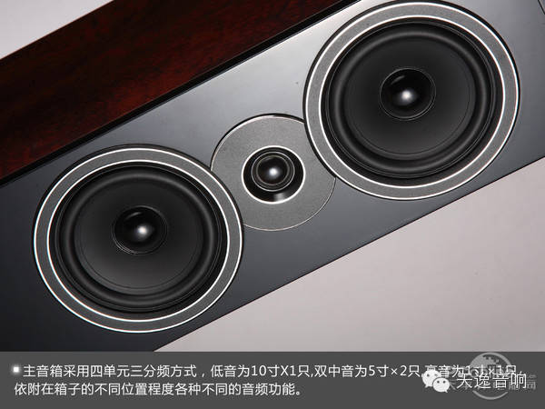 采用四單元三分頻方式,低音為10寸X1只,雙中音為5寸×2只,高音為1寸×1只