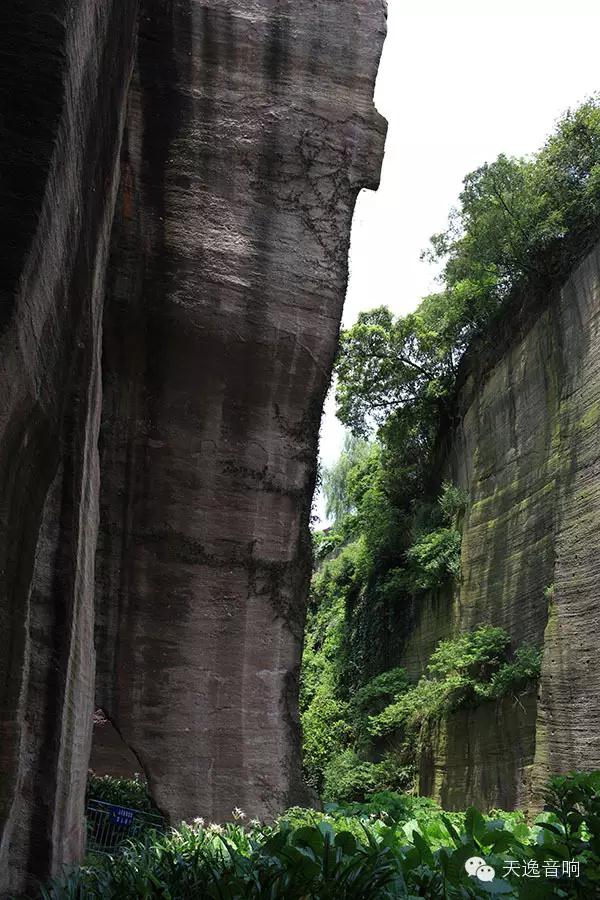 燕子巖是古采石場的精華所在。區(qū)內峭壁嵯峨,巨石橫空,或形成一線鳥道,或形成一穴深洞,半出人工,半如天成,雄偉壯觀,氣勢巍然。從崖下向上仰望,只見四面崖壁連環(huán)對峙,奇峰突屹,廣闊的天空被縮成一方天井,嵯峨巨石搖搖欲墜,令人驚心動魂,神搖目眩。