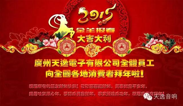 朋友們,漂在異鄉的游子們、遠離家鄉在外拼搏打工的兄弟姐妹們,苦苦盼望遠方的父母回來團聚的留守孩子們、思念親人的父母鄉親們,讓我們一起舉起雙手迎接新年的到來吧!請接收我們廣州天逸音響全體員工的祝福吧:祝福所有的朋友春節快樂!