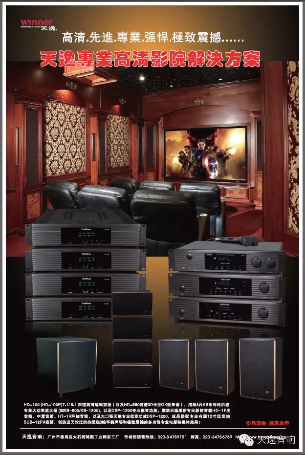 專(zhuān)業(yè)大功率放大器 (如KB-900/KB-1200), 以及DSP-1200專(zhuān)業(yè)低音功放,推動(dòng)天逸最新專(zhuān)業(yè)影院音箱HD-1F主