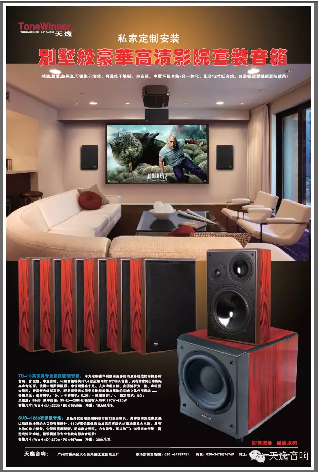 TD-10高保真專(zhuān)業(yè)影院套裝音箱: 專(zhuān)為定制豪華別墅高清影院而度身鑄造的高檔影院套裝,含主箱、中置音箱、環(huán)繞音箱等共計(jì)7只完全相同的10寸喇叭音箱,具有非常突出的高保真聲音還原,使得中頻圓潤(rùn)醇厚,中低頻量感十足、人聲清晰自然、音樂(lè)解析力一流、聲場(chǎng)巨大無(wú)匹,音質(zhì)音色細(xì)膩高貴,輕易營(yíng)造出如同專(zhuān)業(yè)影院般無(wú)與能比的三維立體包圍聲場(chǎng)......