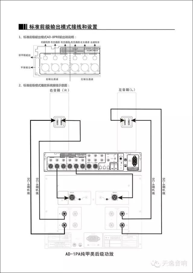 前后級功放的具體接線和前級菜單的設(shè)置方法: