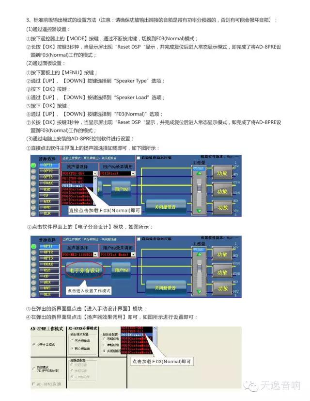 AD-8PRE/AD-8搭配搭配任何其他品牌的(音箱內帶功率分頻器)的高保真音箱(丹拿信心C2音箱)具體菜單設置:
