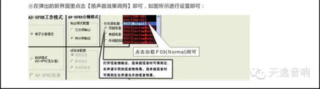 在圖中標出的位置打開超低音輸出,選雙超低音時可以得到左右聲道不同的超低音效果,這時最好就接雙有源低音炮以加強低音效果。如果選單超低音時,低音炮得到的就是左右聲道合并輸出的超低音效果,此次我們只接一只有源低音炮:600W的天逸SUB-1280低音炮,所以選擇了單超低音。經過這樣的設置后,就可以正常使用了。