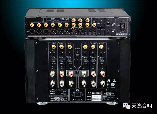 雙功放輸出+低音炮組成2.1系統