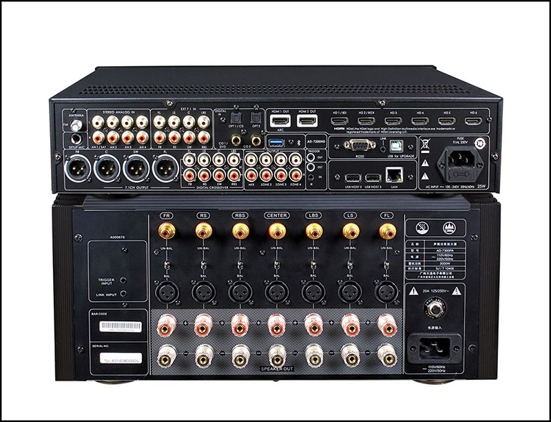 AD-7200HD高清解碼前級放大器 + AD-7300PA 7聲道純后級高保真功放背板圖
