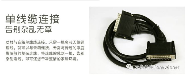 功放與音箱單線纜連接。只需一根多芯無氧銅銅線,就可以與音箱連接,無需與傳統的家庭影院般的復雜走線,將連線縮減到一根,告別雜亂連線,即可還您干凈整潔的家居環境。