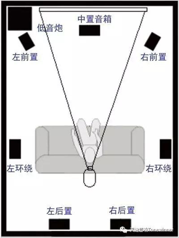傳統5.1或者7.1聲道家庭影院音箱系統中,各司其職分工明確:中置音箱主要負責人聲對白,主音箱主要負責畫面中的各種聲音表現,環繞音箱負責畫面以外的縱深聲音,而低音炮則負責大動態低音效果以及整體的影院氛圍感。