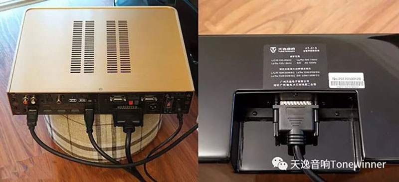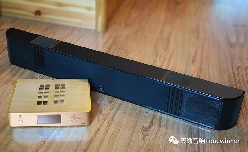 首先我們了解到,悅享一號采用分體式的設計方案,它由全景聲功放AT-01A和集八個聲道于一體的無源聲條AT-01S組成。