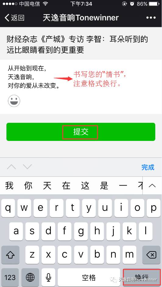 2.“三行情書”緊圍繞“天逸”為主題(可為天逸慶生、表達您這些年對天逸的情感、分享您這些年對音響的追求等等都可以),60字以內,以三行字抒發情感。如: