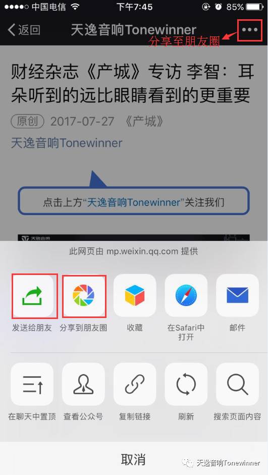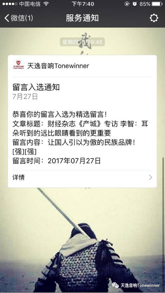 1.關注天逸微信公眾號:天逸音響Tonewinner,