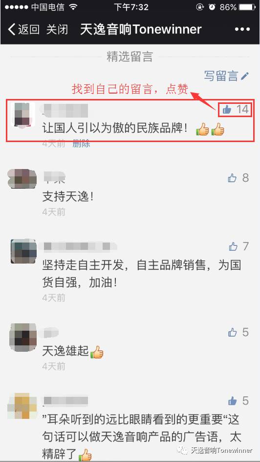 3.發布評論并通過后臺審核后,發動身邊的親朋好友給您的這封“情書”點贊,點贊數量最高的“情書”發布者獲勝,即可獲得天逸準備的豐厚禮品。