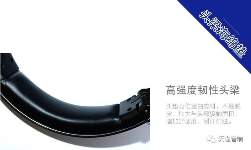 連接頭樑與耳罩的耳機支架采用貨真價實的鋁合金材質,采用工藝極其細膩的陽極氧化和精細噴砂工藝,并用鐳雕工藝將天逸Logo精雕其上,讓耳機看起來動感十足!銀白色的耳機支架與雅黑色的頭樑及耳機腔體有機的結合,形成了黑白分明的強烈對比,讓耳機煥發出金屬澤度和厚實質感!