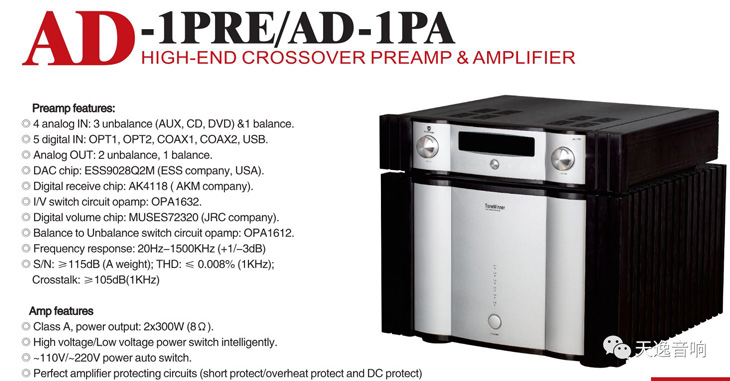 ▌頂級HI-END雙聲道發燒前后級功放——AD-1PRE/AD-1PA