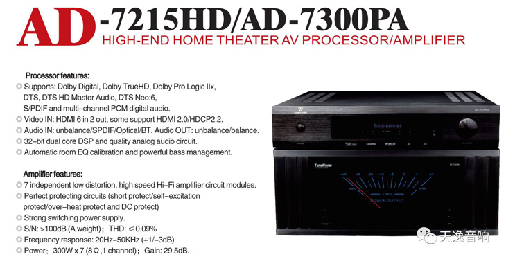 ▌家庭影院七聲道前后級功放——AD-7215HD/AD-7300PA