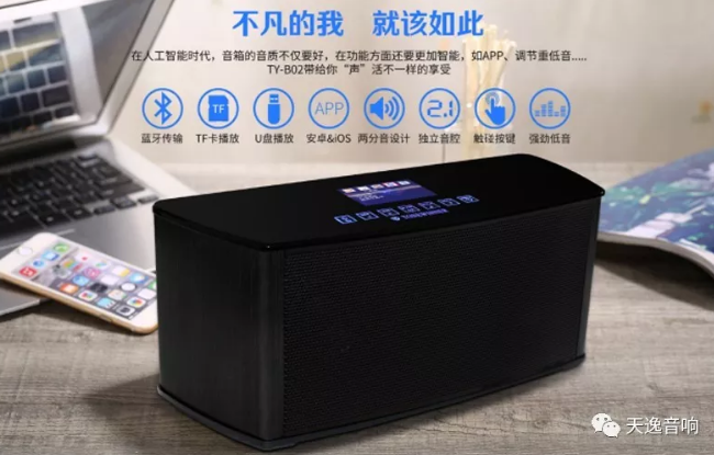 藍牙音箱作為目前音箱市場普及率最高且最受消費者歡迎的產品之一,幾乎已經成為了必需品。但縱觀市場上大多數藍牙音箱,主打的都是便攜理念,少有在音質上能與傳統(tǒng)音箱媲美的產品。作為一家擁有26年HI-FI設計經驗的品牌商,天逸一直把音質放在首要位置,此次推出的藍牙音箱TY-B02除了擁有強大的處理系統(tǒng)、豐富的功能接口、簡潔的操作方式以外,最鮮明的特色是它對聲音的重放表現(xiàn)!