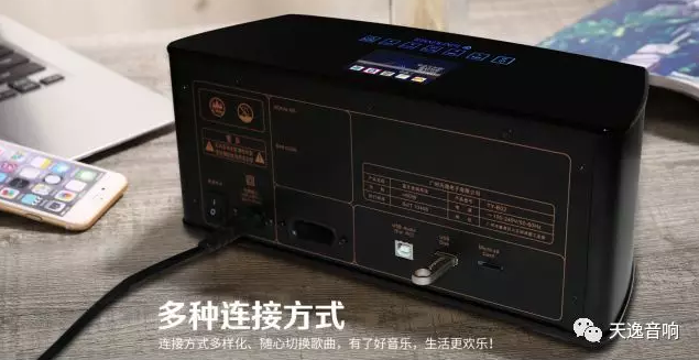 TY-B02造型極其簡潔大方,通體采用黑色的配色方案,箱體材料使用鋁合金及亞克力制作,整體設計沒有一絲花哨的元素。頂、底部呈現(xiàn)鏡面效果,觸感順滑。頂部是一塊彩色TFT顯示屏,用于顯示操作信息及歌曲信息,并設置有帶背光的觸摸按鍵,給沉穩(wěn)的設計增添一抹色彩。箱體加工制作十分精細,工藝考究,兩側采用鋁合金拉絲及陽極氧化工藝,正面弧形的金屬網罩下,3只喇叭單元隱約可見。TY-B02的外形雖不能讓人眼前一亮,但它既莊重典雅,又時尚大氣,現(xiàn)代感強!