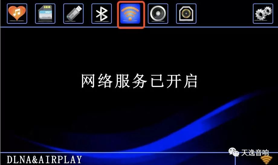 (2).播放器選擇音源:光標(biāo)移至【W(wǎng)i-Fi圖標(biāo)】-按面板【OK鍵】(此時網(wǎng)絡(luò)服務(wù)已開啟)