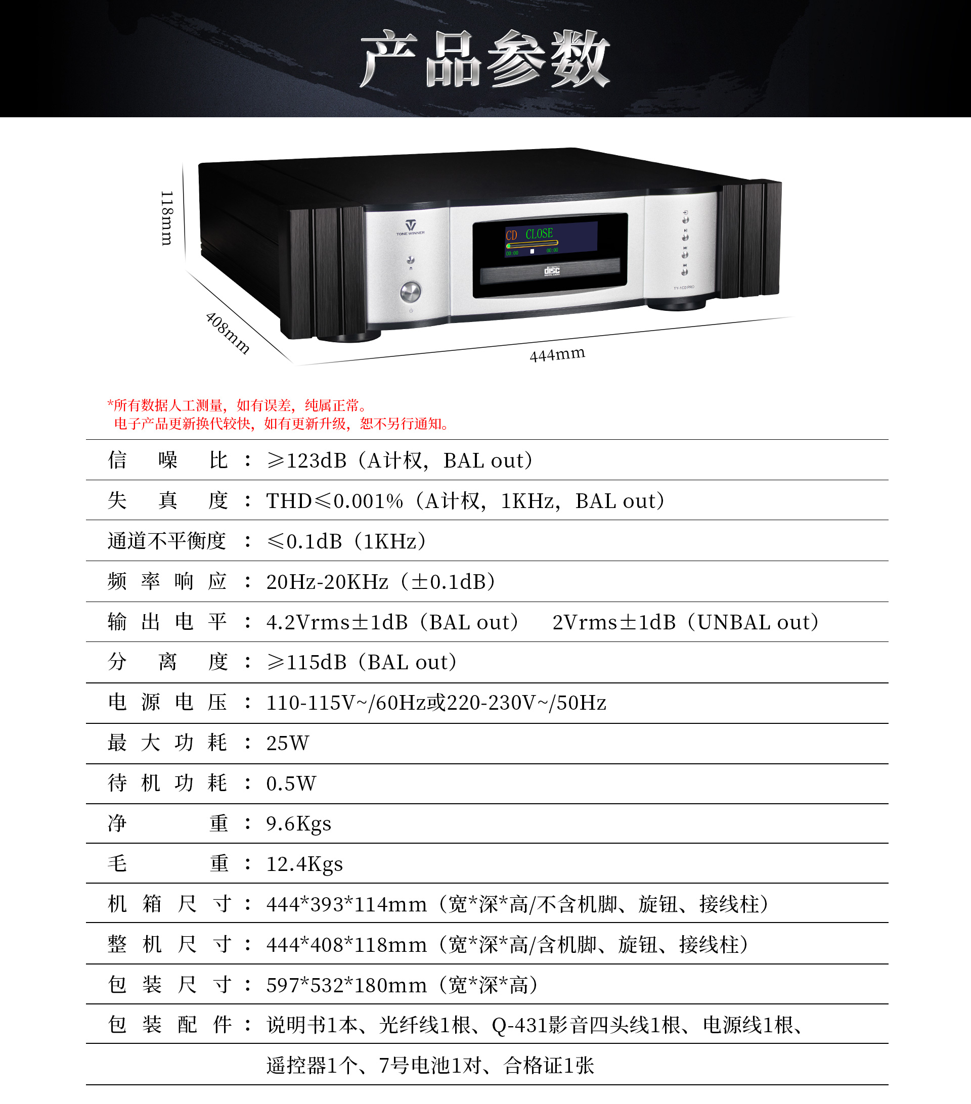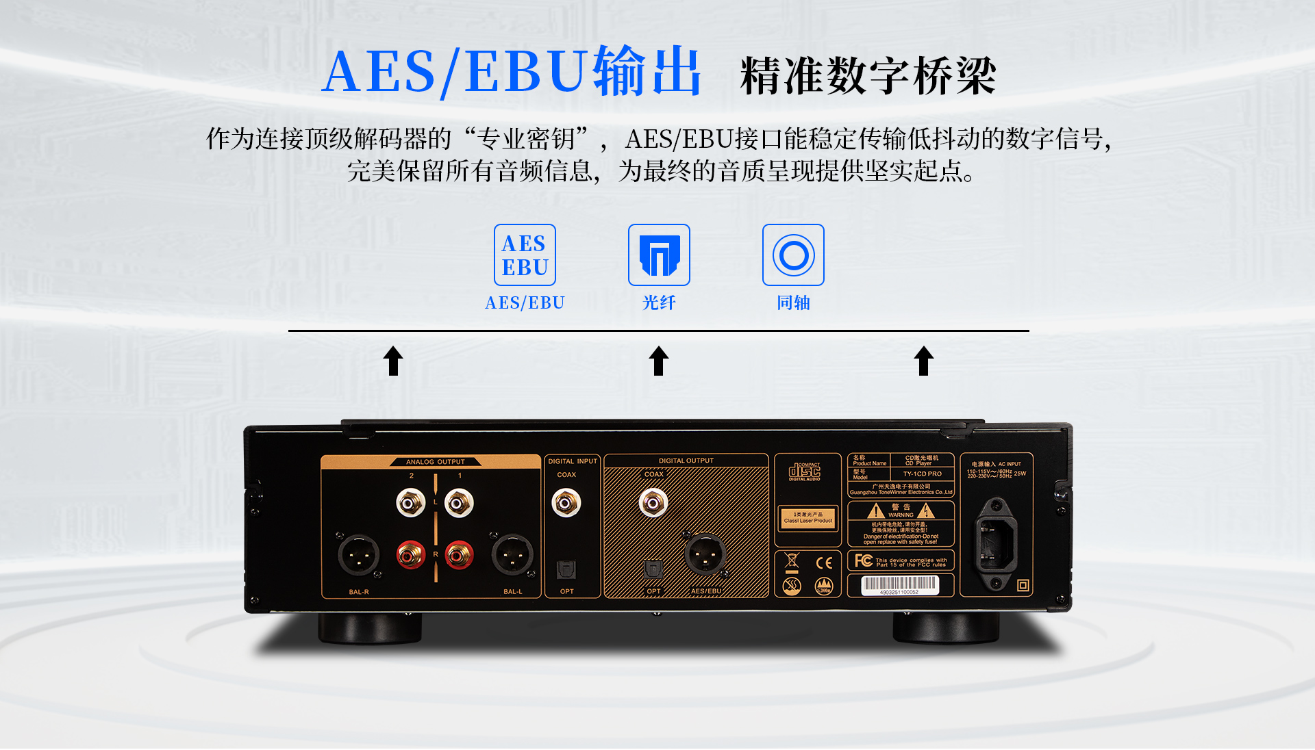 產品型號:TY-1CDPRO 信噪比:≥123dB(A計權,BAL out)