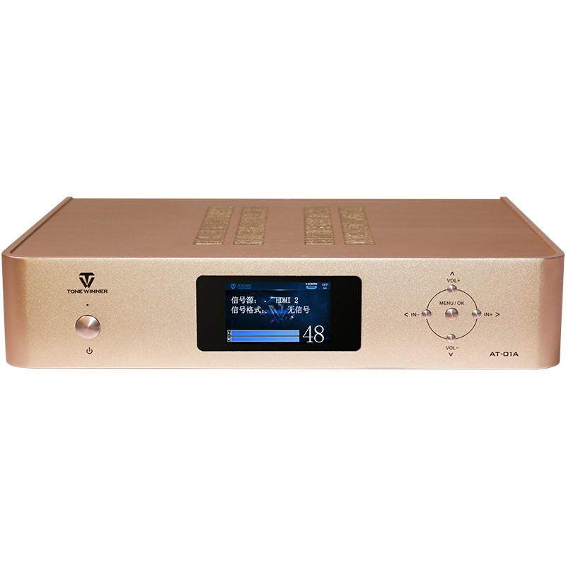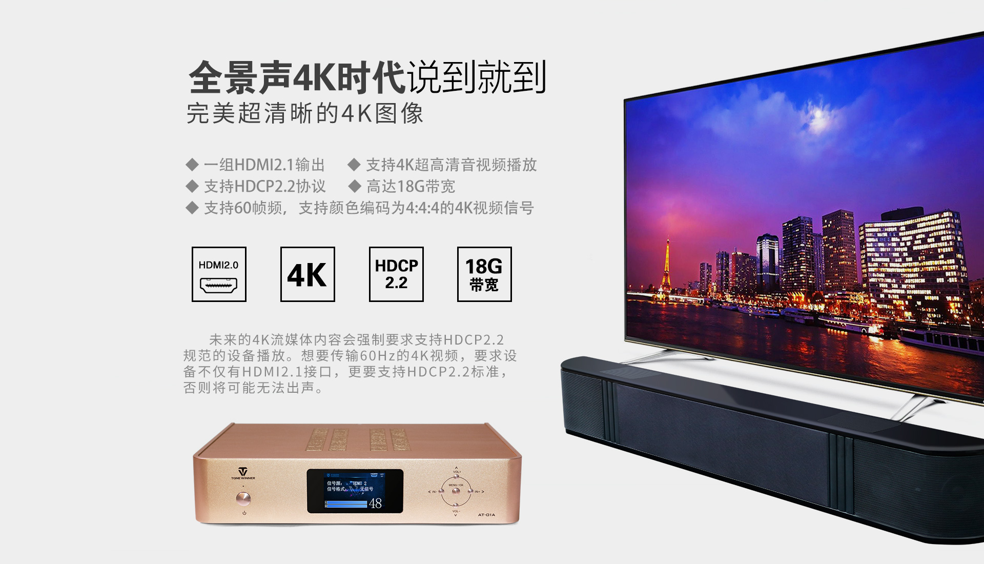 二、電路及用料設計 AT-01A采用三片DSP方案,其兩片為美國ADI公司的shark浮點DSP,21487以及21489,另外一片DSP為美國Cirrus Logic公司的CS48560,這三片DSP的處理能力十分強大,前兩片ADI芯片負責完成全部的杜比全景聲解碼,第3片CS48560 DSP負責進行聲場后處理,包括聲場虛擬及聲場擴展,并且還要進行音效的調整及喇叭的聲色校正。三片DSP完成杜比全景聲的解碼及音效后處理,效果卓越一流。功率放大部分采取美國TI公司最新最先進的數字放大器(D類放大器),提供25W×7 (RMS)的輸出功率。超低音部分提供100W的強勁功率。完美的解碼及聲場處理加上強大的驅動功率,能重現出卓越的全景式環繞音效,讓你在家也能有身臨其境的影院享受。 AT-01A支持4組HDMI輸入、1組HDMI輸出,它采用了Silicon Image的最新HDMI處理芯片,支持HDMI2.0及HDCP2.2標準,它支持60幀頻,色編碼為4:4:4的4K視頻信號,能滿足至今為止最高標準的家用視頻標準。 除有4組HDMI的輸入端口之外,AT-01A還提供了1組光纖和1組同軸數碼輸入,還有1組立體聲模擬音頻輸入。另外,還留有一個數字式藍牙接口,可以插入天逸配套專用的藍牙接收器(支持APTX),這樣就可以將手機或電腦上的音樂通過無線方式推送到悅享一號全景聲影院音響之上。 AT-01S是與AT-01A配套的無源聲條,它內置8個聲道12只喇叭,正面有左、中、右三個聲道,均由3吋低音及軟膜高音構成兩分音工作方式,兩側由兩只3吋全頻喇叭構成左右環繞,頂部由兩只3吋全頻喇叭構成反射式頂置聲道。正面還有兩只4吋的大功率喇叭構成雙低音產生強勁的超重低音。