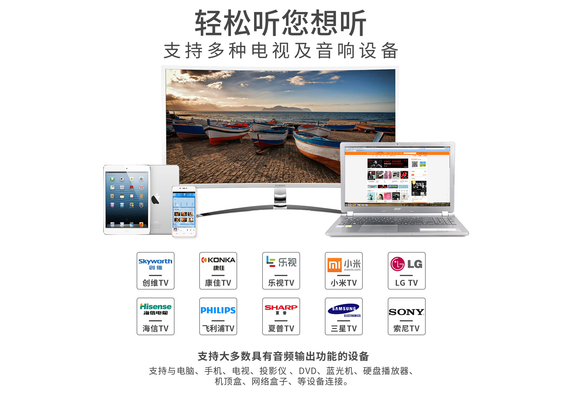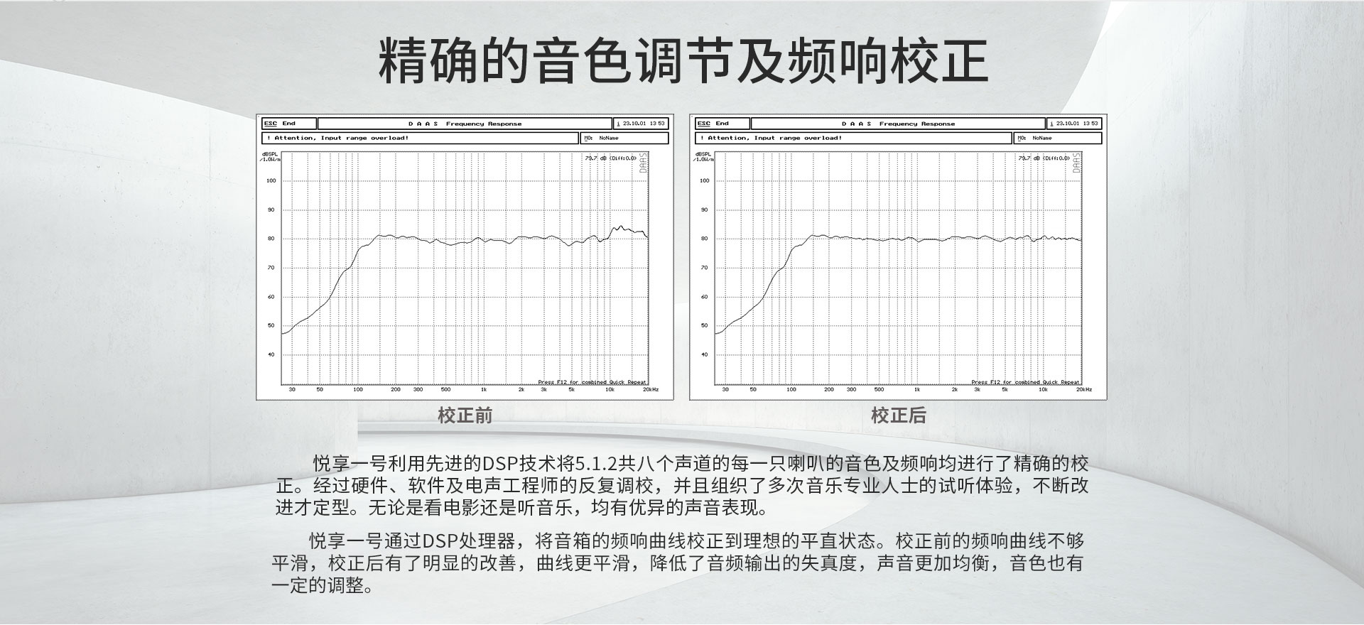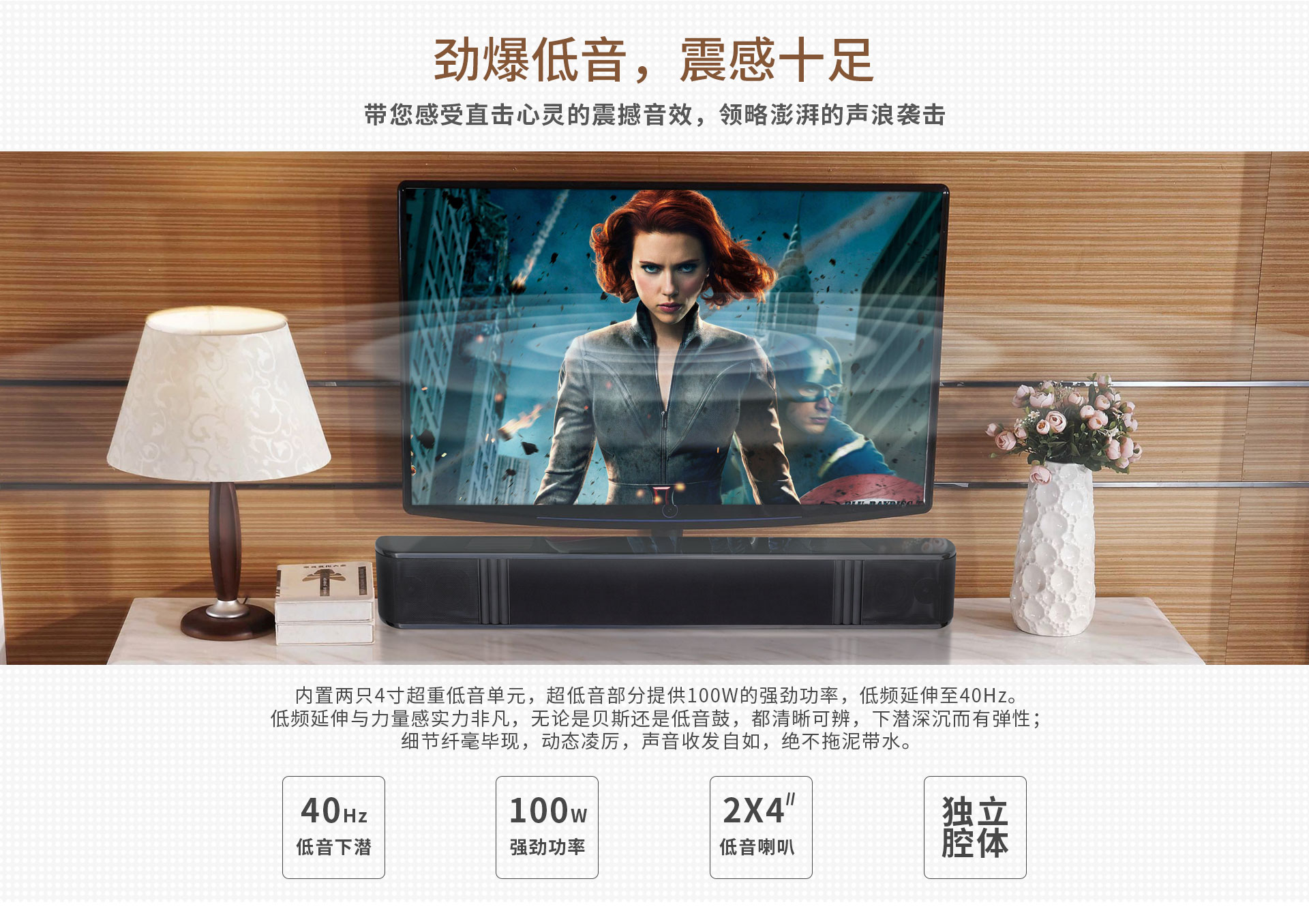 四、聲音特性 AT-01S的每一個聲道均采用獨立腔室,確保了每個聲道聲音的分離度。所有的喇叭均采用高靈敏度、低失真度的設計,音質一流,聲音淳厚溫暖,低音氣勢磅礴。 聽音樂時悅享一號又會給你極強的音樂感染力,它的高音清晰順滑,中音淳厚溫暖,低音厚重有力、氣勢宏大。聲場層次分明定位清晰、聲音細節豐富又不毛糙,無論是看電影還是聽音樂,悅享一號都能給你一流的視聽享受。