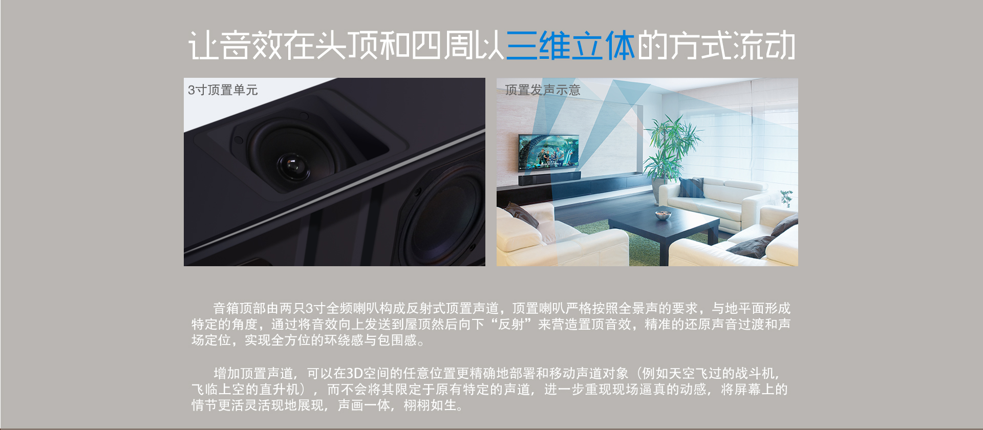單元配置:3/4"高音x3+3"中低音x3+4"低音x2+3"全頻x4 | 聲道:5.1.2 |