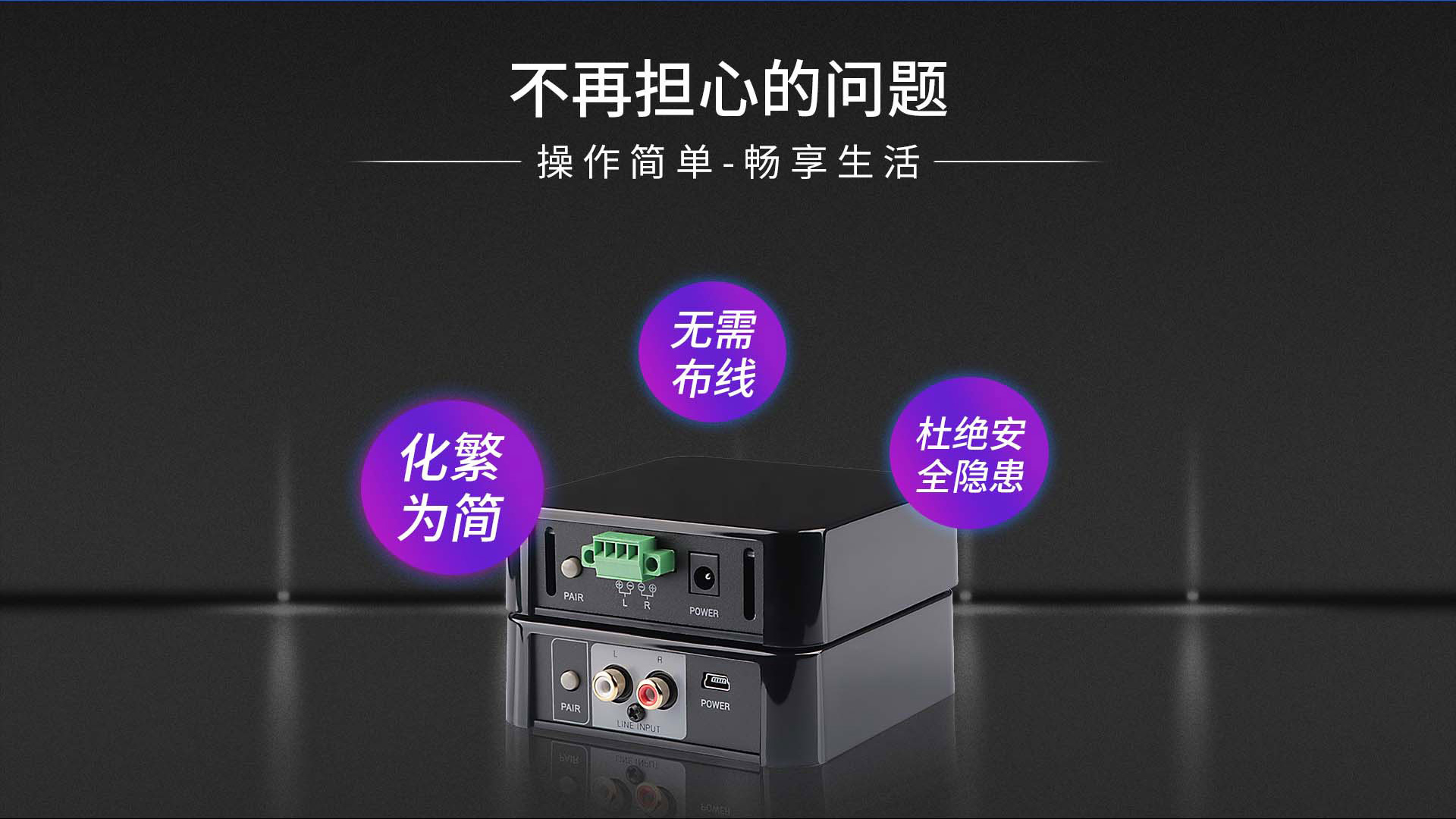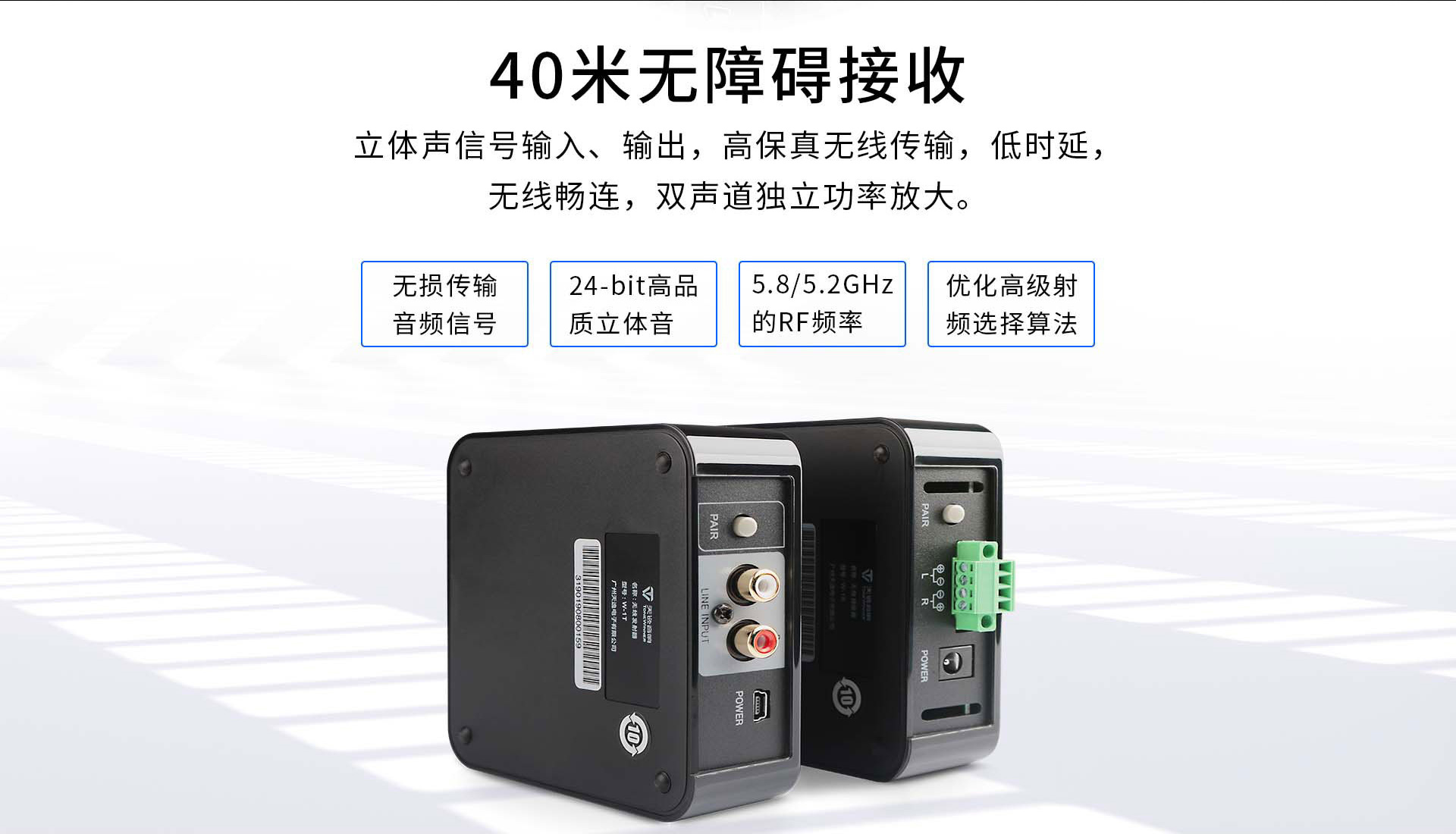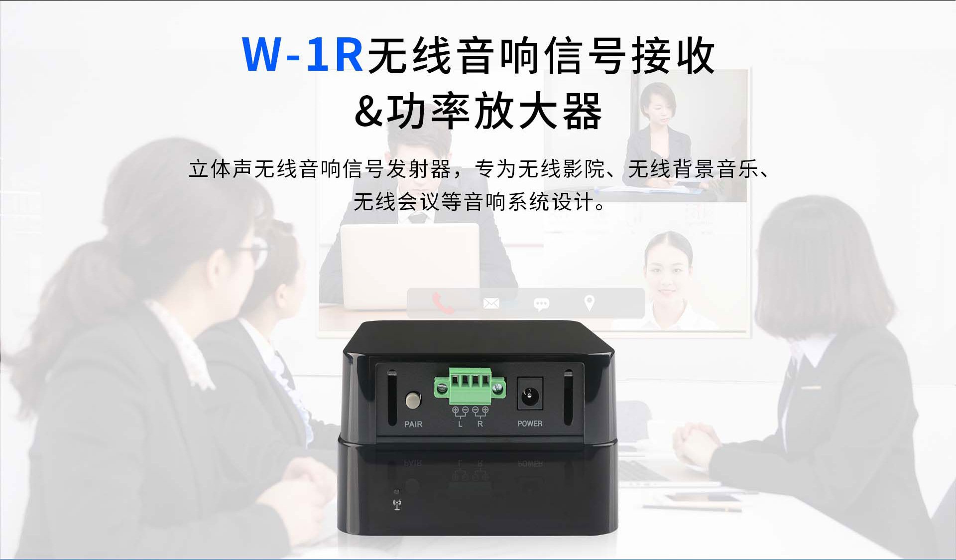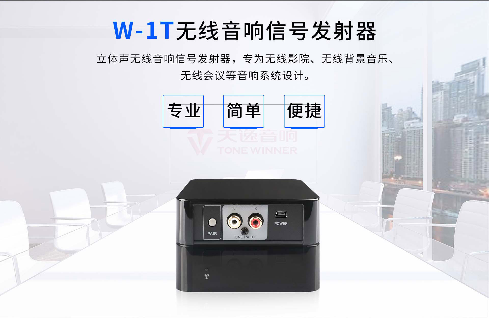 W-1T·W-1R高品質(zhì)無線收發(fā)器概述 一、產(chǎn)品介紹 天逸W-1·TW-1R,是一款專為無線影院、無線背景音樂、無線會(huì)議等音響系統(tǒng)設(shè)計(jì)的無線收發(fā)器。它集信號(hào)發(fā)射、信號(hào)接收和功率放大于一體,立體聲信號(hào)通過W-1T發(fā)射,再由W-1R接收放大至音箱,具有高保真、低延時(shí)等特點(diǎn)。收發(fā)器間無障礙接收距離達(dá)40米,直流電源供電,穩(wěn)定安全。機(jī)身小巧輕盈,占用空間小,存放和使用便捷,輕松解決客廳、會(huì)議室等布線問題。