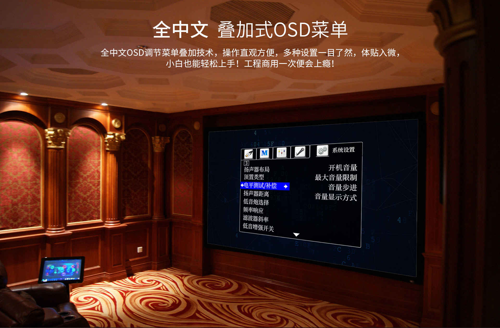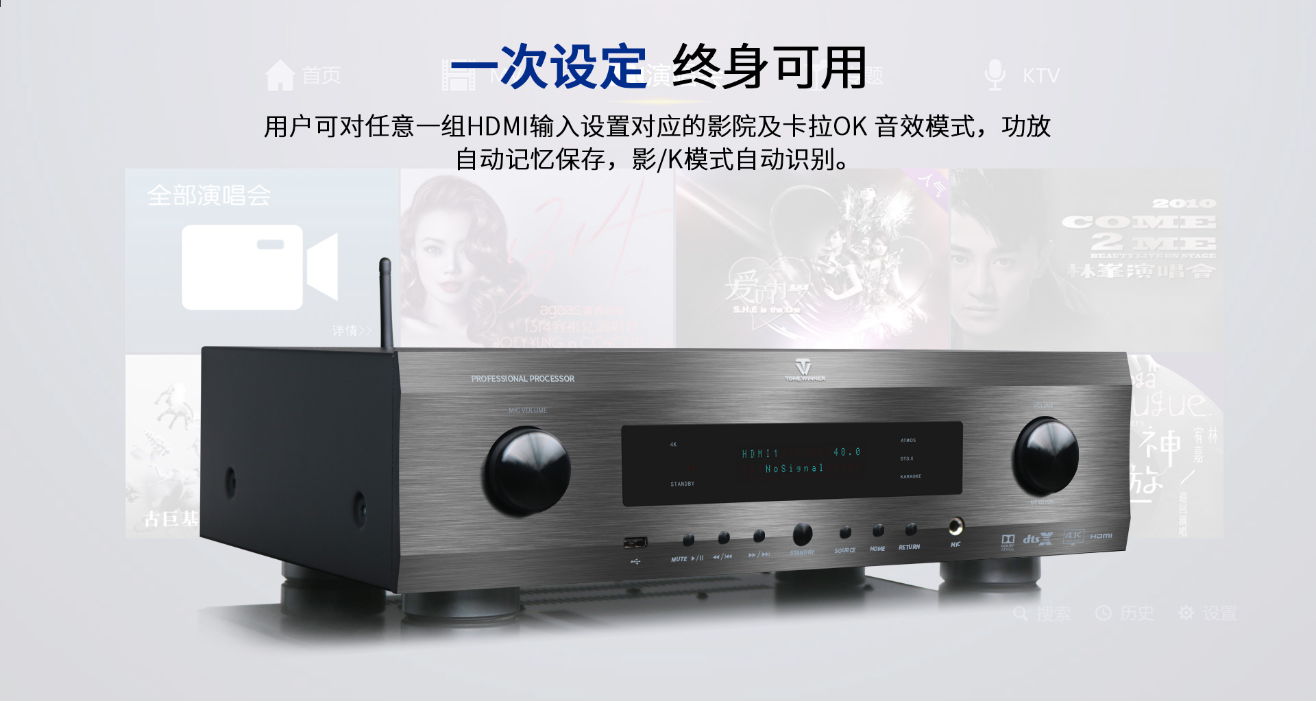 適用場所:影吧、影K、多媒體會議室、娛樂活動中心、接待室等影音間 | 隨機配件:說明書、遙控器、HDMI線、影音四頭線、電池、兩芯電源線、合格證 |