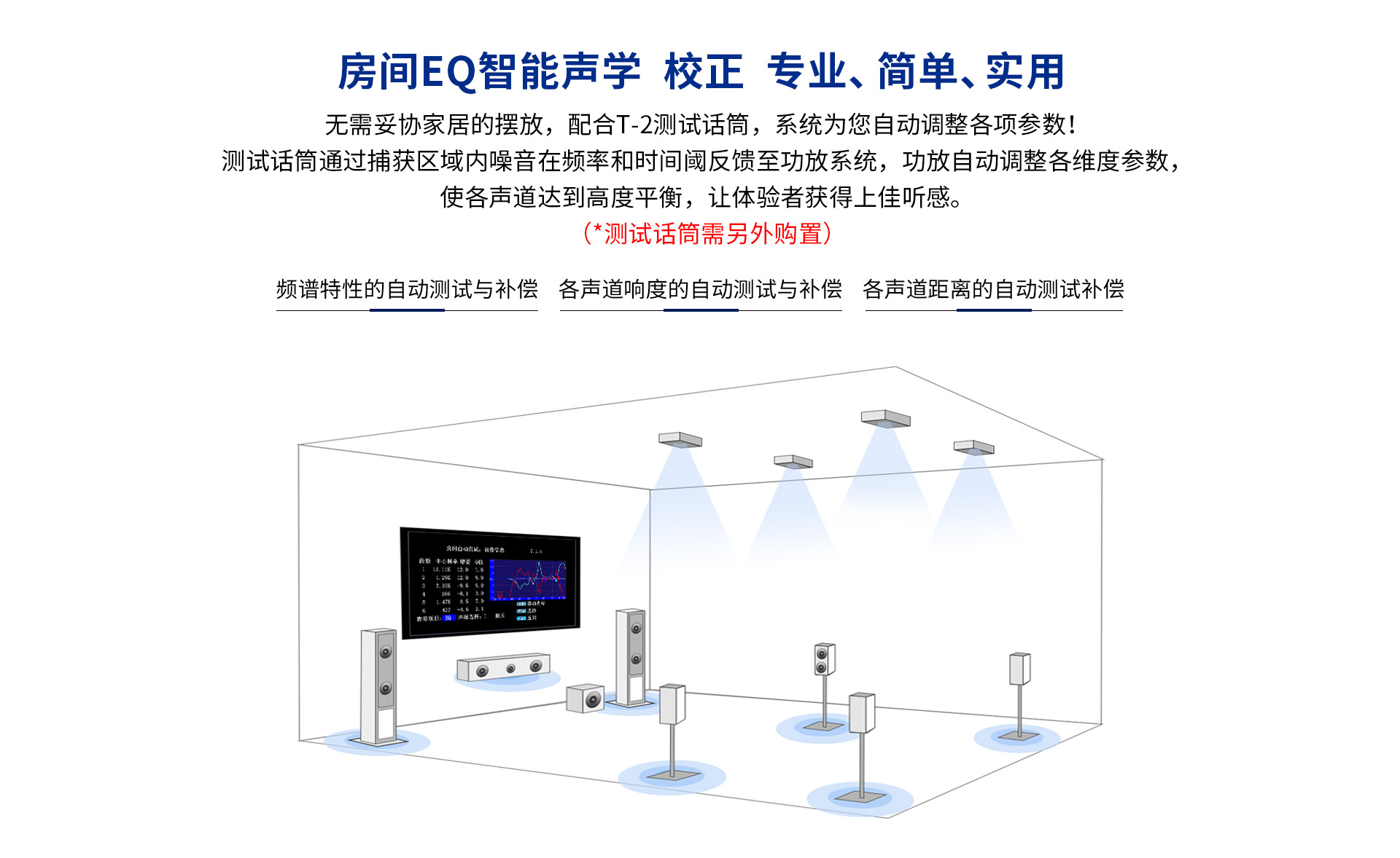 產品配件:說明書、電源線、合格證、遙控器、Q-431影音四頭線、HDMI線 適用測試話筒:T-2
