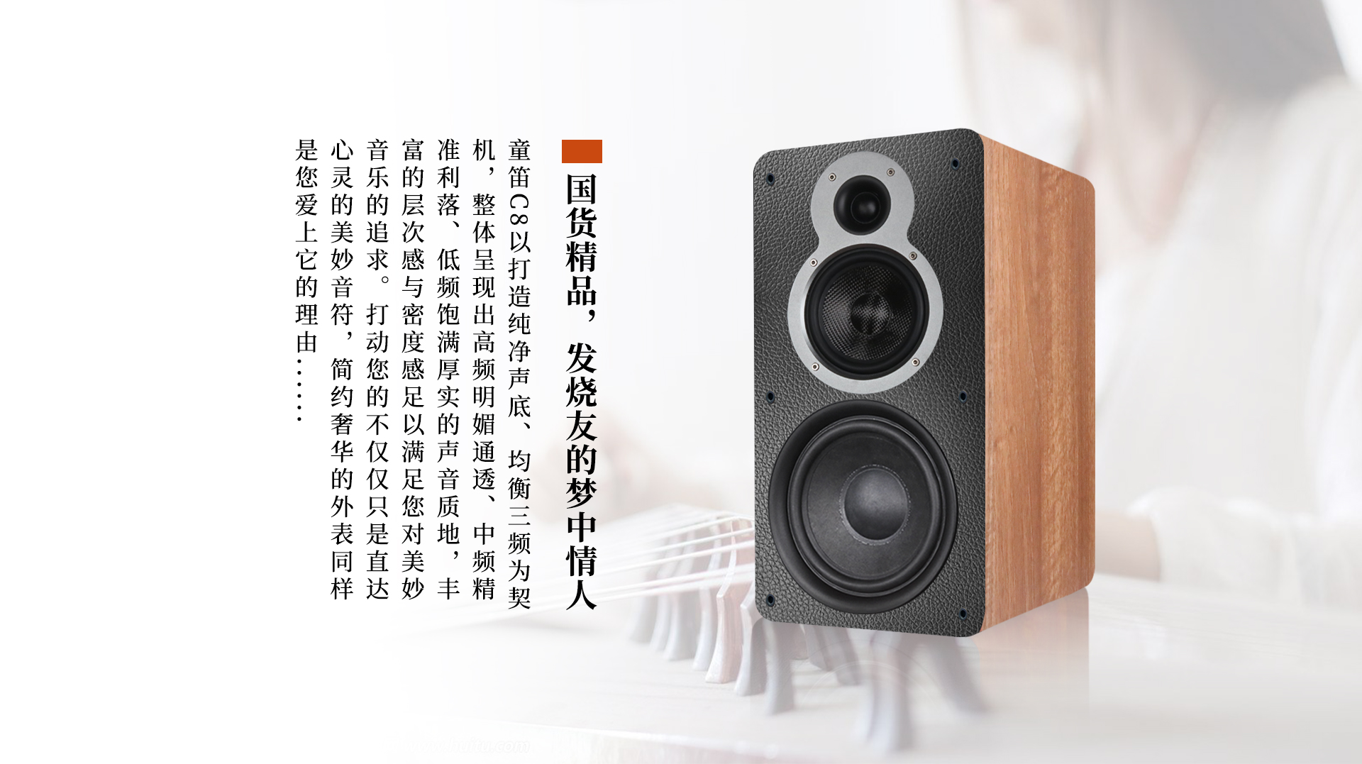 三、功能特點(diǎn) 1. 三單元三分頻設(shè)計(jì),高頻定位準(zhǔn)確,層次分明;中頻呈現(xiàn)干凈利落,圓潤飽滿;低頻澎湃如潮,下潛深厚有力。 2. 喇叭部分采用了鑄鋁盆架、耐高溫鋁鎂合金骨架、大口徑5N無氧銅線、超長沖程大口徑音圈以及巨型天然特強(qiáng)永磁鋼。 3. 童笛C8在聲音表現(xiàn)上,高音清晰明亮,明亮通透;低音穩(wěn)健扎實(shí);沉著有力;中音圓潤,人聲醇厚溫潤。整體聲音優(yōu)雅細(xì)膩,細(xì)節(jié)飽滿。