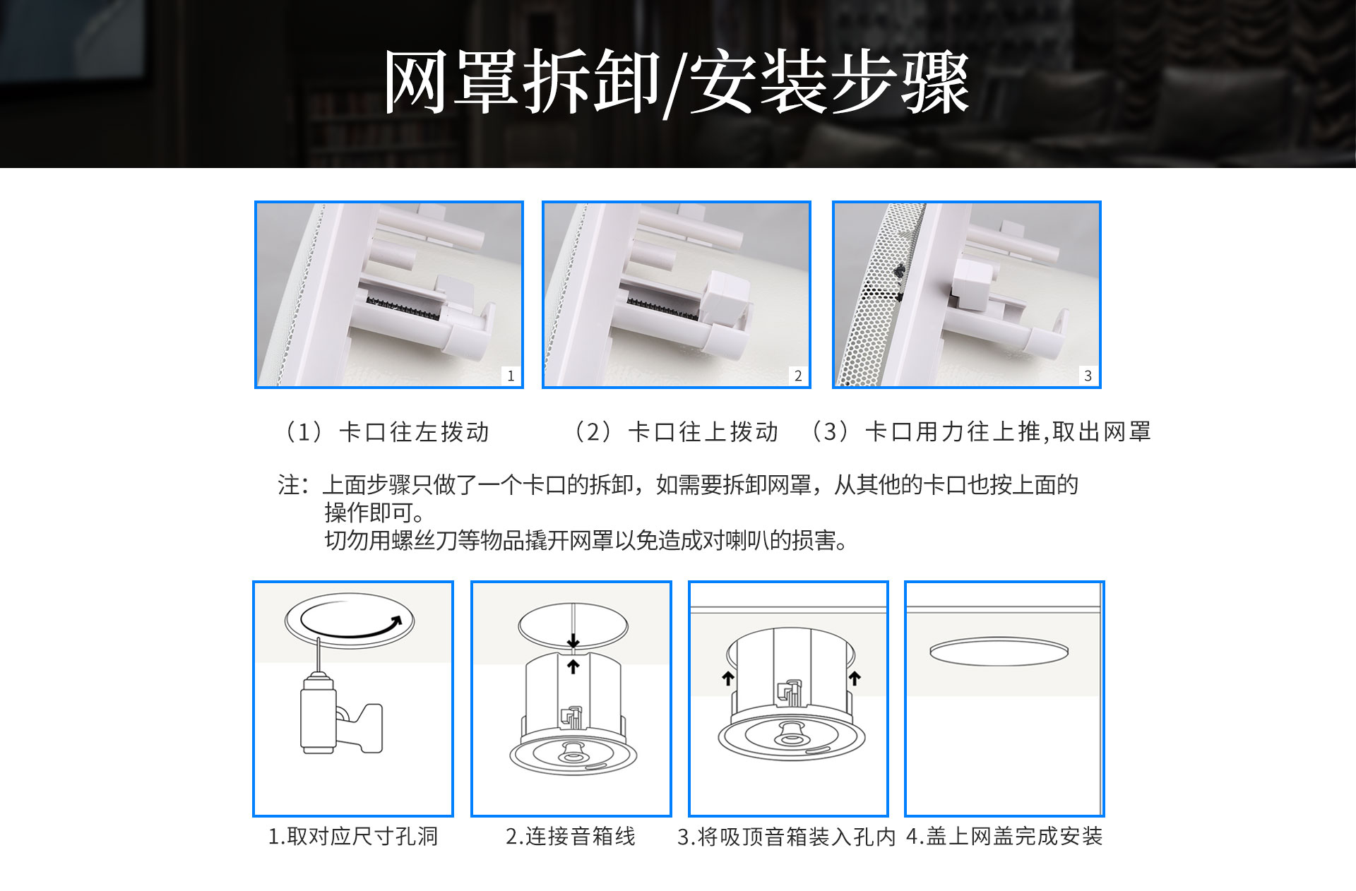 | 工程安裝開孔尺寸: ф176-186mm(直徑)*116(深)mm,開孔邊緣最大厚度:35mm | 最大包裝外尺寸: 275(寬)*275(深)*320±1.5(高)MM(一對包裝) |