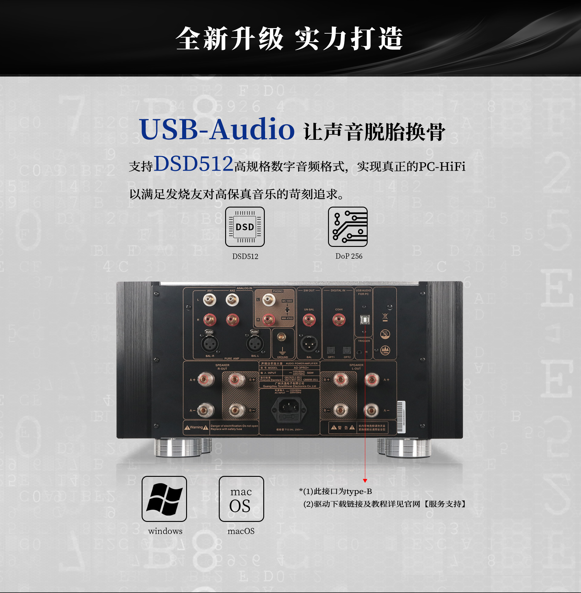 USB輸入支持:DSD512、256、128、64;DoP256、128、64;PCM16-32bit,44.1-768kHz