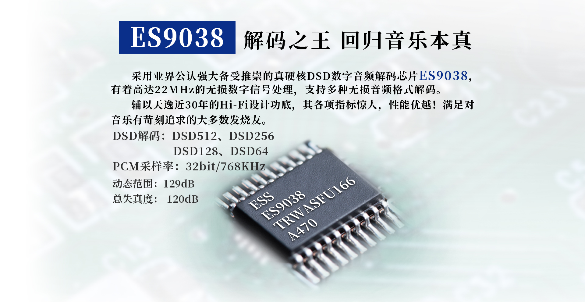 3、USB聲卡,支持768k采樣率PCM和DSD512軟件解碼/硬件解碼;