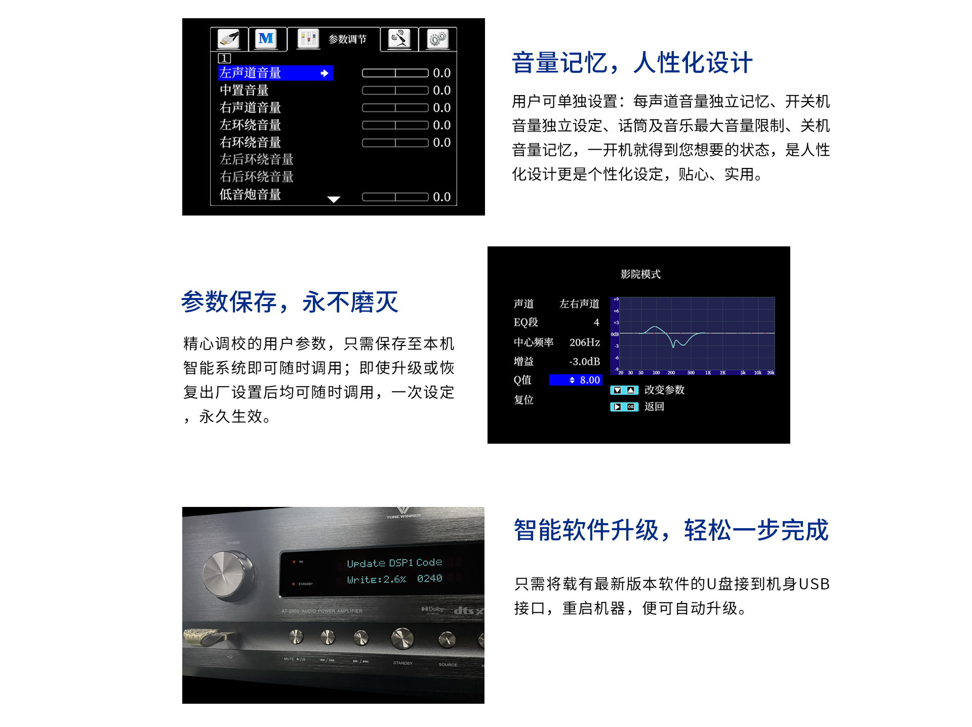 8.支持房間EQ、揚聲器距離、延時、聲壓的自動測試及補償,一鍵式操作并自動校正,同時支持用戶手動調節;