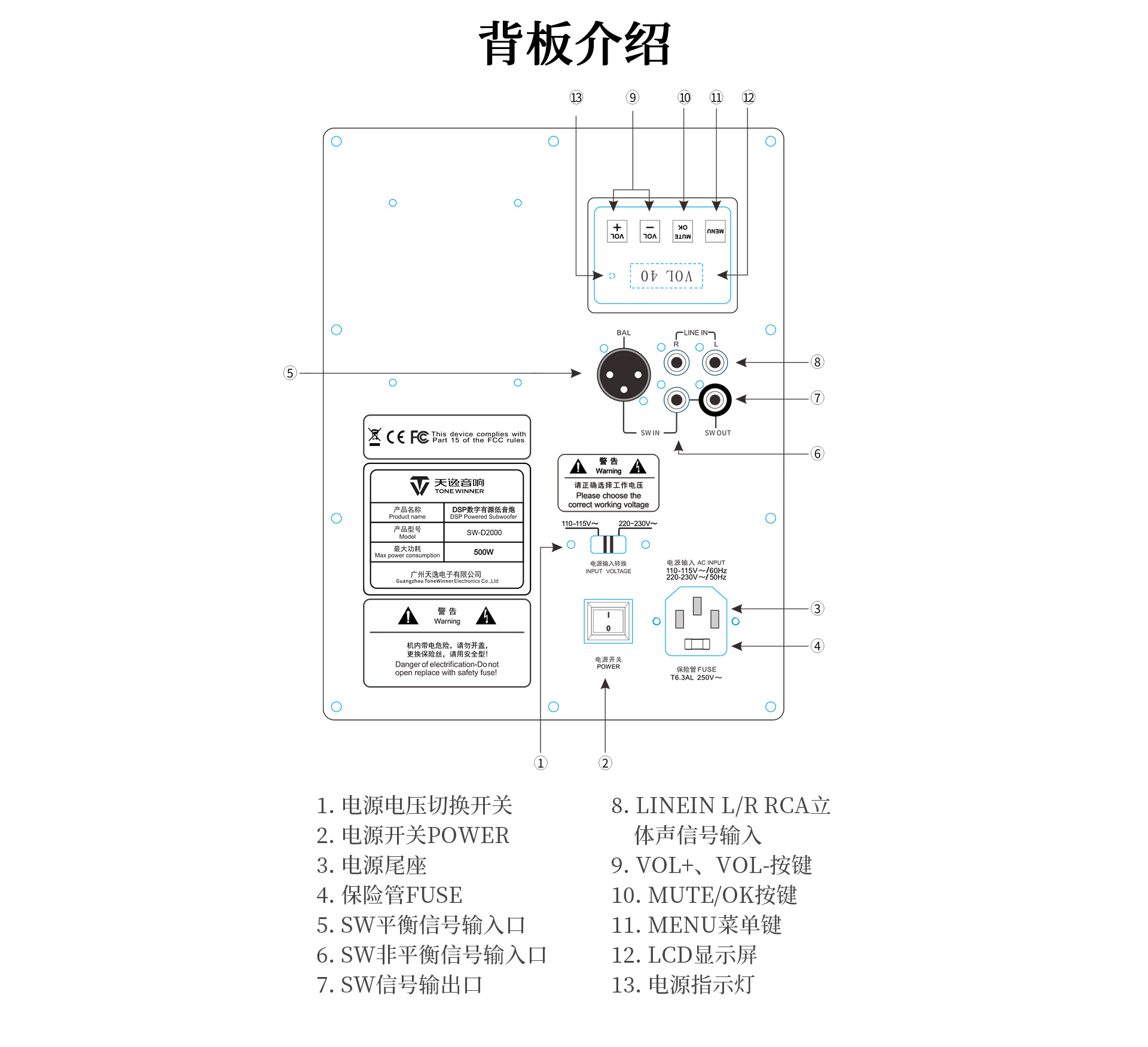 峰值功率P-P: 2000W | 附送配件:說明書、電源線(三芯)、合格證 |