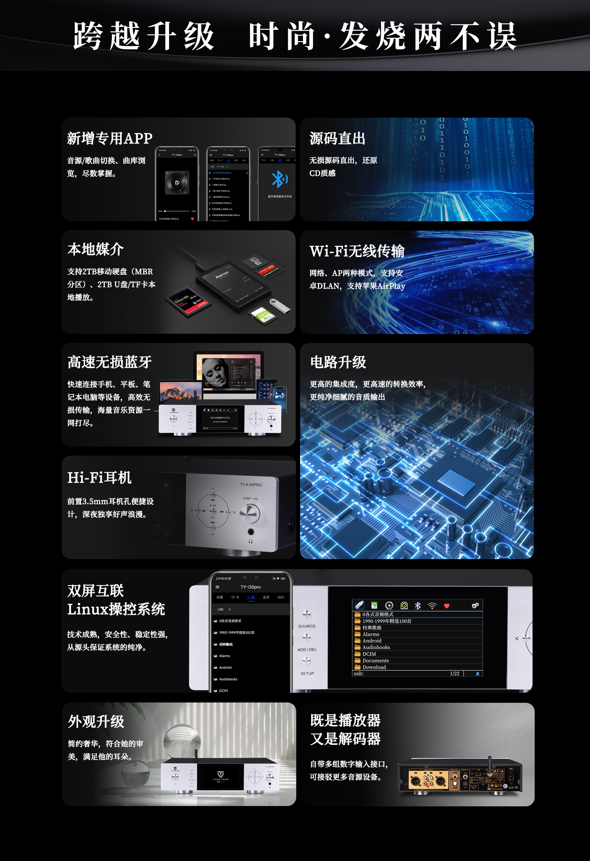 作為一款高保真無線數字播放器,TY-i30PRO的音樂表現力十分出色。它的聲音平衡又立體,諸多細節經過精細的解碼得以還原。其低頻厚實、中音柔順溫暖、高音干凈利落,層次感極好,無論是古典樂,還是電子音樂都能完美詮釋。